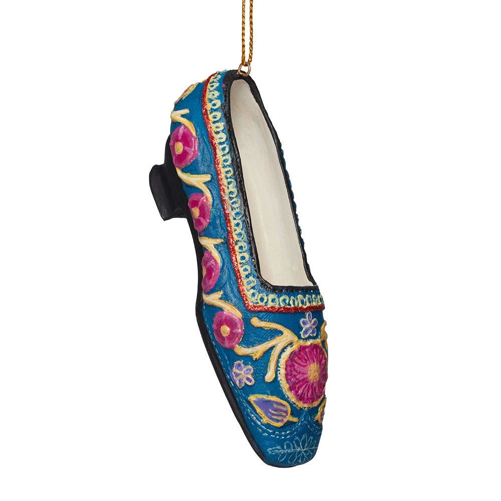 These miniature collectible shoe ornaments express the elegance and flair of actual shoes in the holdings of The Costume Institute at The Met. This year, our set of seven shoe ornaments includes the Red Bloom Pump Shoe Ornament (1958), the Yellow Flower Shoe Ornament (ca. 1966), the Embroidered Slipper Shoe Ornament (mid-19th century), the Italian Floral Pump Shoe Ornament (ca. 1955), the Mixed Flora Platform Sandal Shoe Ornament (1971), the Embroidered Mule Shoe Ornament (ca. 1927), and the Striped Evening Slipper Shoe Ornament (1860–70). Hang them on your tree, or decorate your space with them year-round.