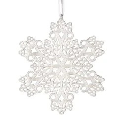 - Snowflake: Etched sterling silver; includes silver ribbon for hanging; 3”H x 3”W