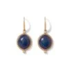 These eye-catching triple-drop earrings reinterpret three striking glass pieces in The Met collection: a stripy blue inlay dated to Early Imperial Rome (1st half of 1st century A.D.) and two Egyptian inlay fragments—one bearing a floral design (100 B.C.–A.D. 100), the other a spiral pattern (200 B.C.–A.D. 100)—crafted by way of a mosaic glass technique, which allowed the artisan to create a repeatable image.