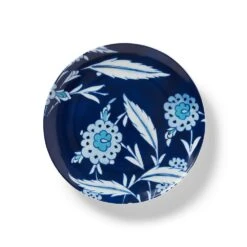 Our inspired set of six blue-and-white salad plates reproduces the detailing on six ceramic treasures in The Met collection: a British tile (ca. 1875) painted with flying cranes—the Japanese symbol for longevity—designed by Christopher Dresser (British, 1834–1904) for Minton Ceramic Factory (British, 1793–present); a late 17th-century Edo-period Japanese dish, likewise featuring a pair of cranes; a 19th-century Chinese porcelain platter and rack painted with an idyllic landscape scene; a 16th-century plate with a floral and foliate motif, attributed to the Iznik kilns in Turkey; a 16th-century blue-and-turquoise dish considered to be one of the most spectacular Iznik pieces in the Museum’s collection; and a Chinese porcelain dish with flowering branches ( late 16th–early 17th…See More