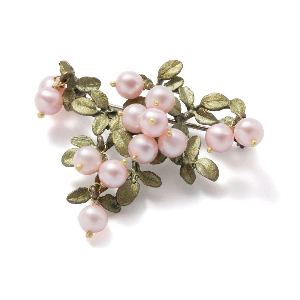 Celebrating the beauty of the natural world, this pretty brooch with cultured freshwater pearls highlights the pure elegance of unadorned herbs, shrubs, berries, and leaves.