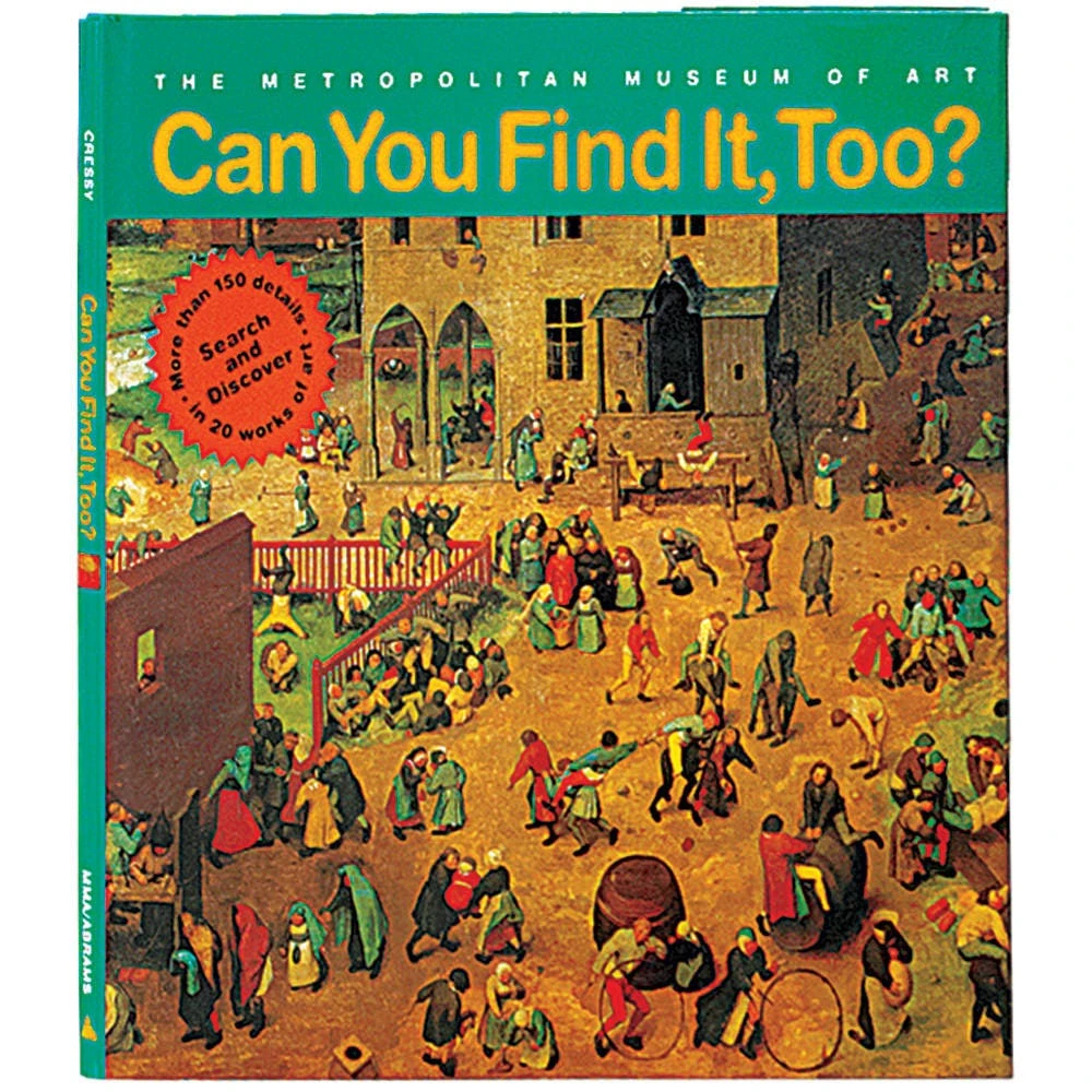 This seek-and-find book invites kids to take a closer look at art. A list of intriguing details hidden within each work sets readers on a journey across cultures and around the world. All the fun of Can You Find It? is extended in Can You Find It, Too? This search-and-discover book invites readers of all ages to take a close look at twenty works of art from The Metropolitan Museum of Art and other museums around the world.