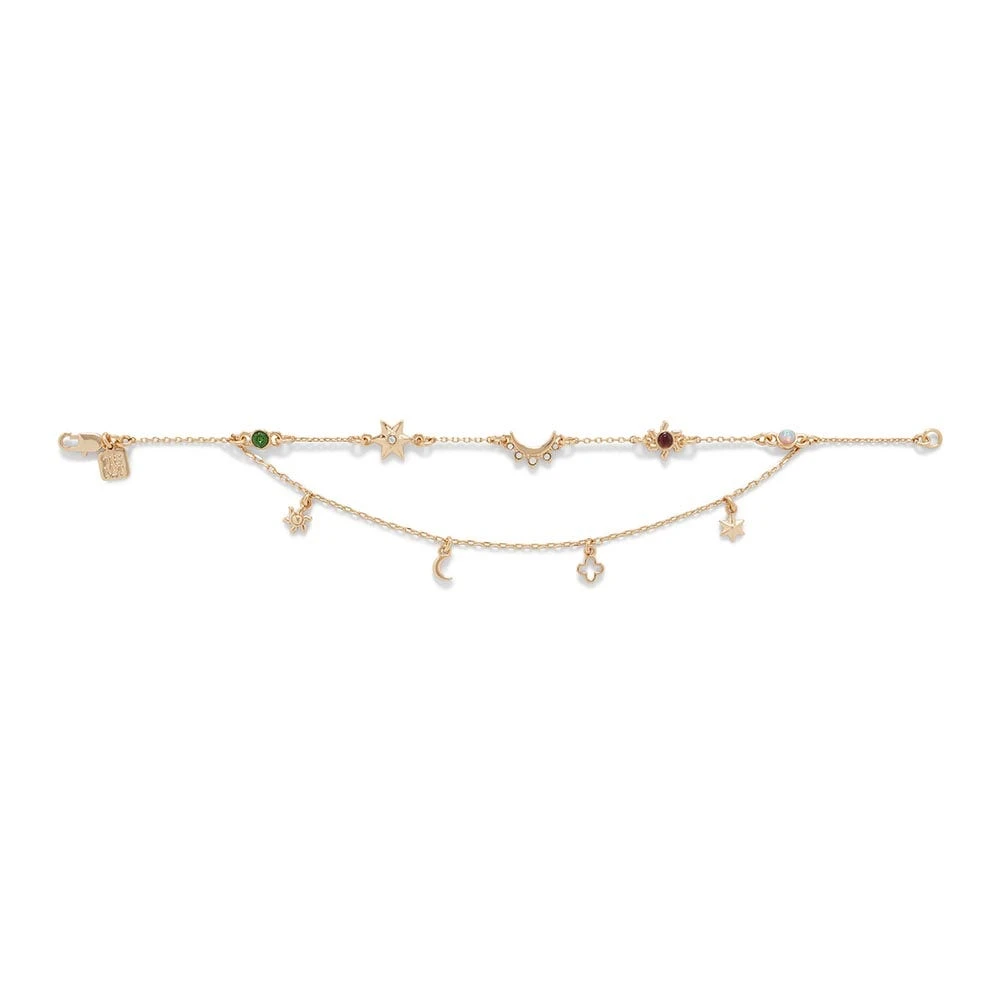 The celestial symbols adorning our double-strand bracelet interpret the sun and moon motifs on a stained-glass roundel (1390) at The Met Cloisters. Crafted in a large court workshop in Niederösterreich, Austria—which specialized in elongated figures positioned in profile, heavy masses of drapery, and an unusually rich range of colors—the roundel was originally installed in the castle at Ebreichsdorf near the Hungarian border. Having withstood attacks by the Mongols in the 13th century followed by the Turks in the 17th century, the castle never returned to its medieval splendor; with the exception of a surviving panel in Vienna, the windows housed at The Cloisters are all that remain of the structure’s magnificent glasswork.