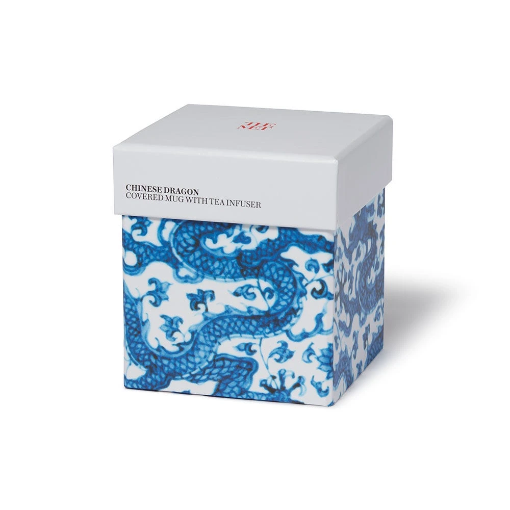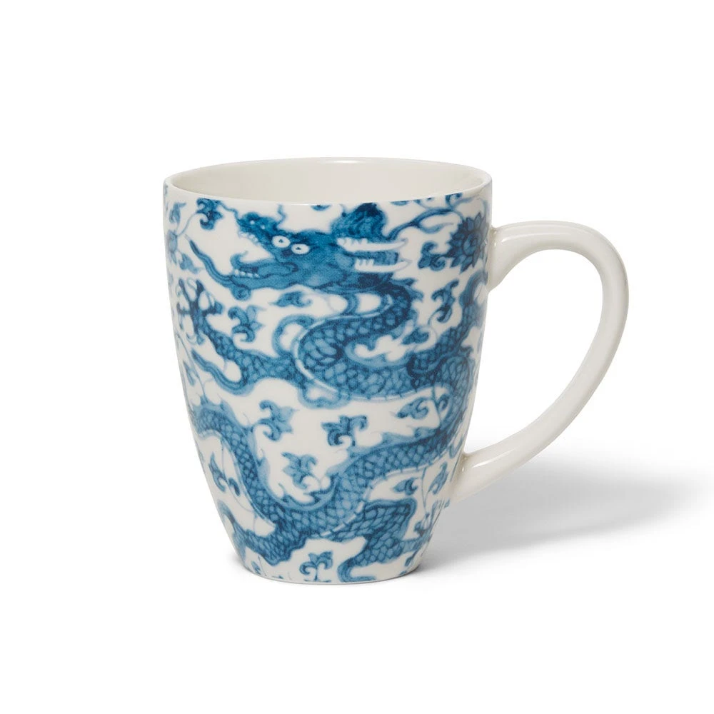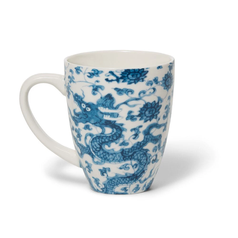 The dragon and lotus motif on our covered mug comes from an early 16th-century dish made during China’s Ming dynasty and housed at The Met. This classic color palette exemplifies one of the most innovative developments in the global history of ceramics. Cobalt blue paint on white porcelain flowered in China during the 14th century, after which it was adapted by potters far and wide.