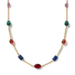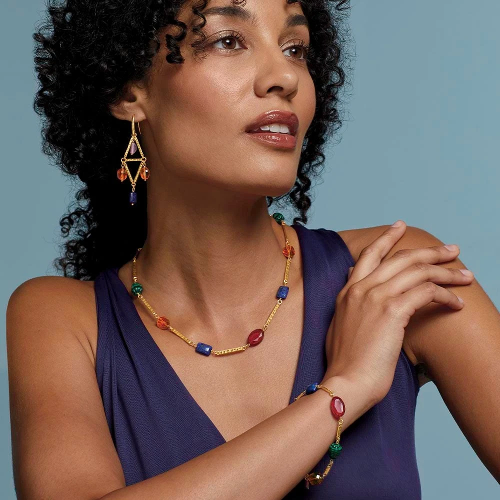 This eye-catching necklace breathes new life into an Imperial Roman necklace in The Met’s esteemed Cesnola Collection, the most important and comprehensive assemblage of Cypriot art and artifacts in the western world. The earth-toned paste beads on the original, crafted in Cyprus around the 2nd century A.D., are reimagined with colorful bead embellishments. Due to the natural elements in this jewelry, the color of the stones may vary.