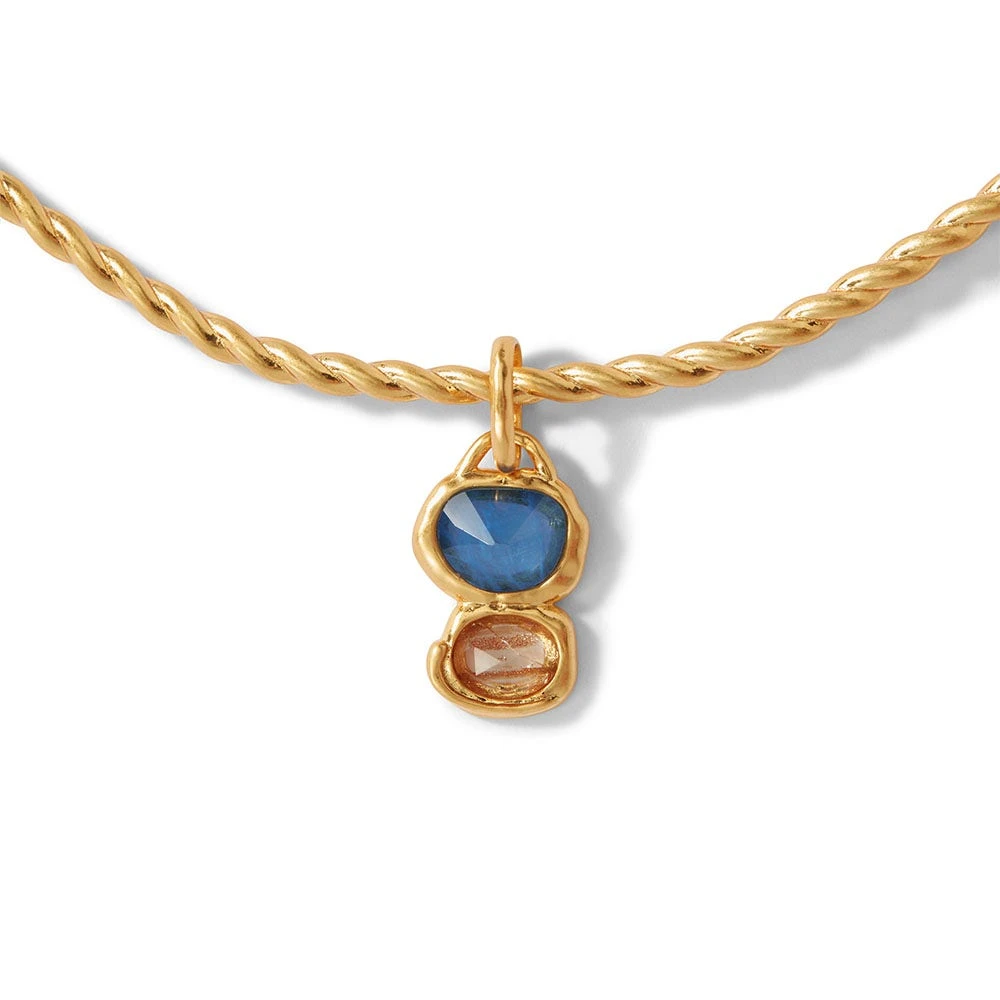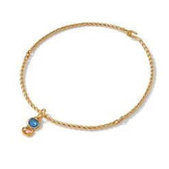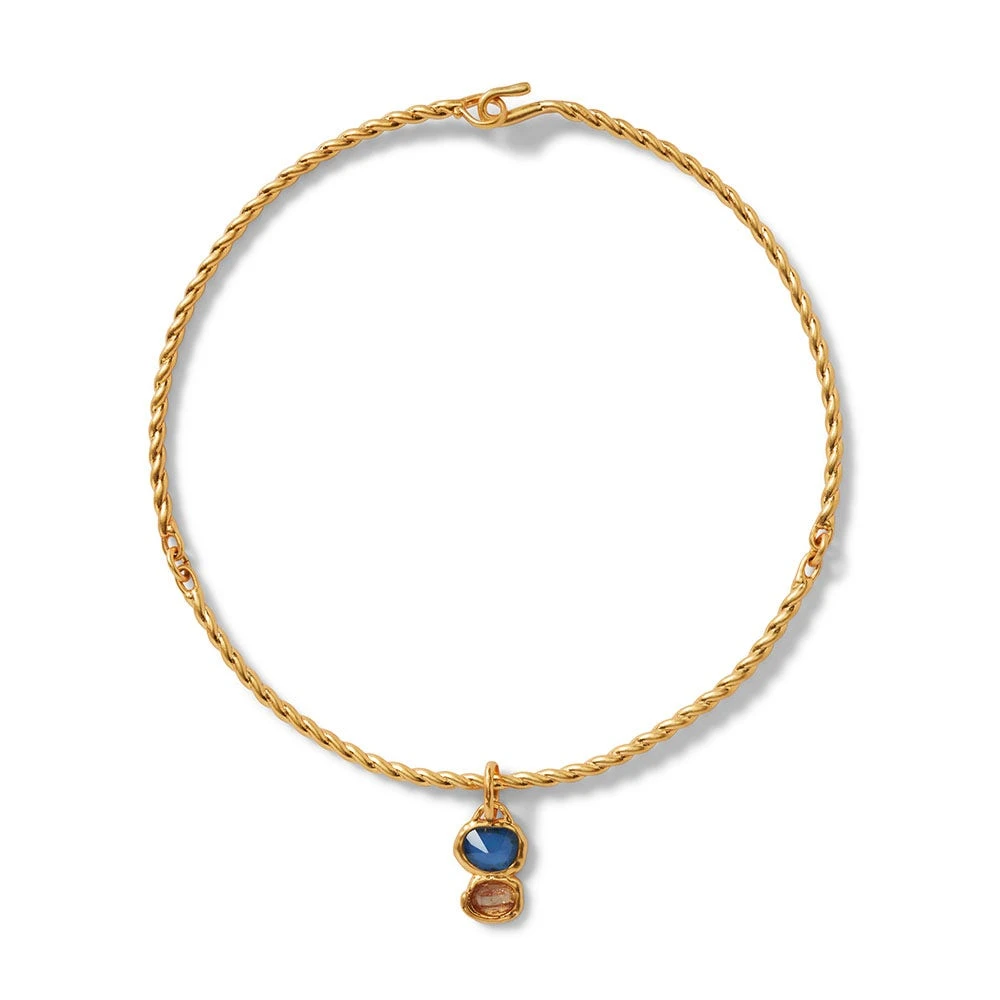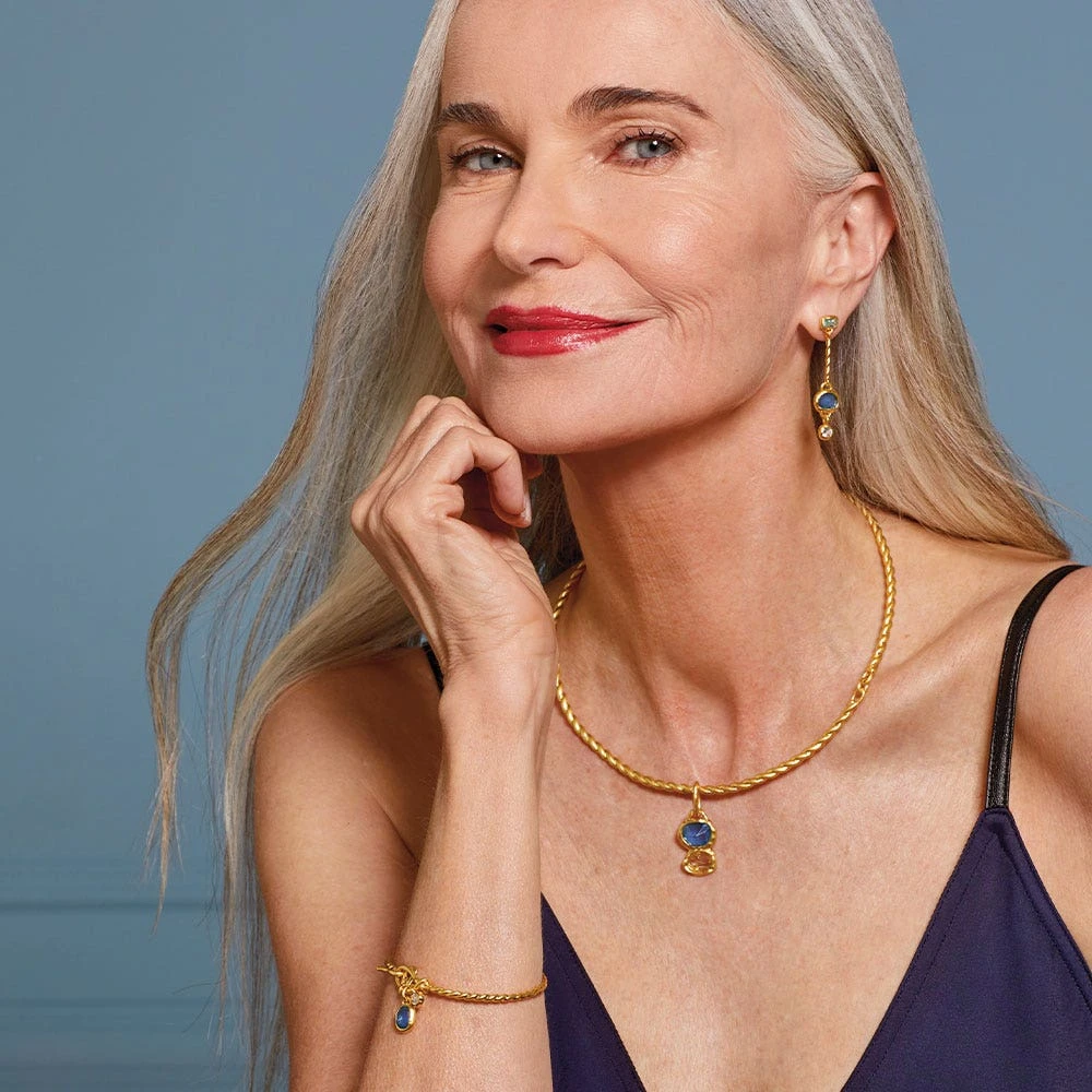 An elegant gold bracelet from Cyprus is reimagined as a contemporary collar necklace. We’ve highlighted the original adornment’s characteristic twist motif and elevated the design with a pop of blue in the way of a removable charm. The Museum’s bracelet is housed in the esteemed Cesnola Collection, which comprises art and artifacts made in Cyprus between ca. 2500 B.C. and ca. A.D. 300 and serves as the most important and comprehensive assemblage of its kind in the Western world.