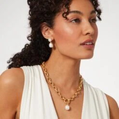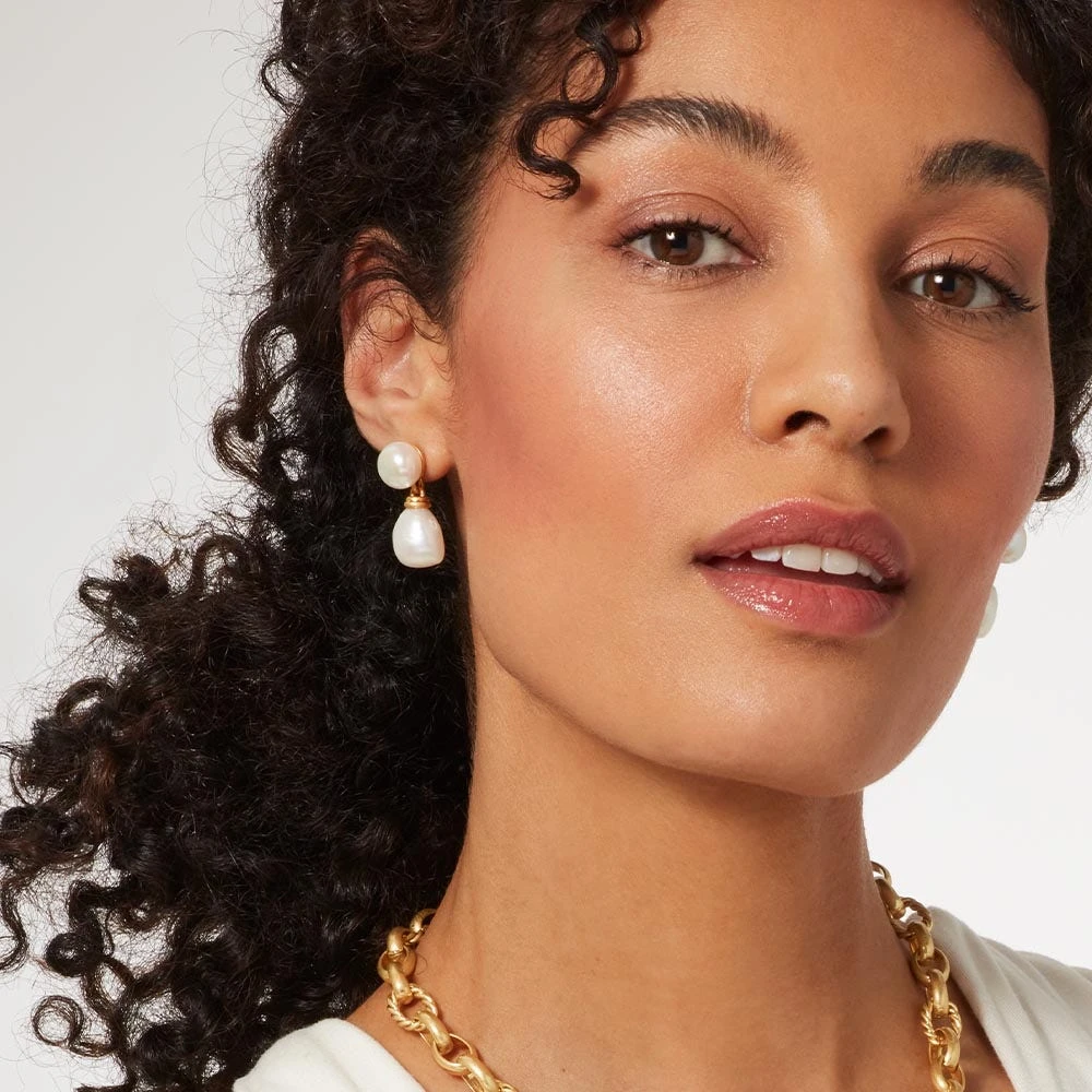 These stylish cultured freshwater baroque pearl earrings reinterpret an elegant gold bracelet from Cyprus and now in The Met collection. So-called “baroque” pearls are named after the word barroco, a Portuguese term for a pearl with an irregular shape. The Museum’s bracelet belongs to the esteemed Cesnola Collection, which comprises Cypriot art and artifacts made between ca. 2500 B.C. and ca. A.D. 300, and serves as the most important and comprehensive assemblage of its kind in the West.