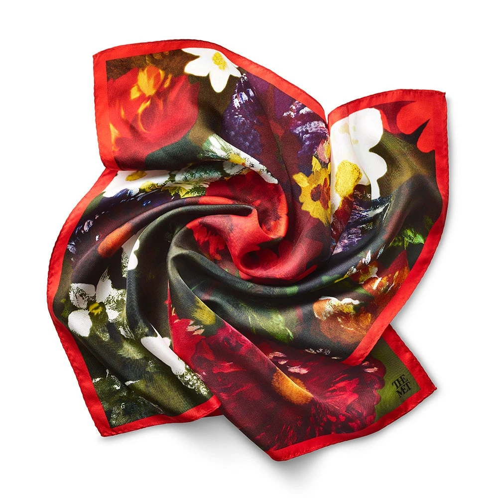 In September 1848, Eugène Delacroix (French, 1798–1863) retreated to his country house to escape the turmoil of post-revolutionary Paris. There he created a group of flower paintings from life, meant for the Salon of 1849. Because of the possibility of frost, he worked quickly and produced five canvases. Shown in detail on our scarf, Basket of Flowers in The Met was one of only two paintings he deemed suitable for the Salon.