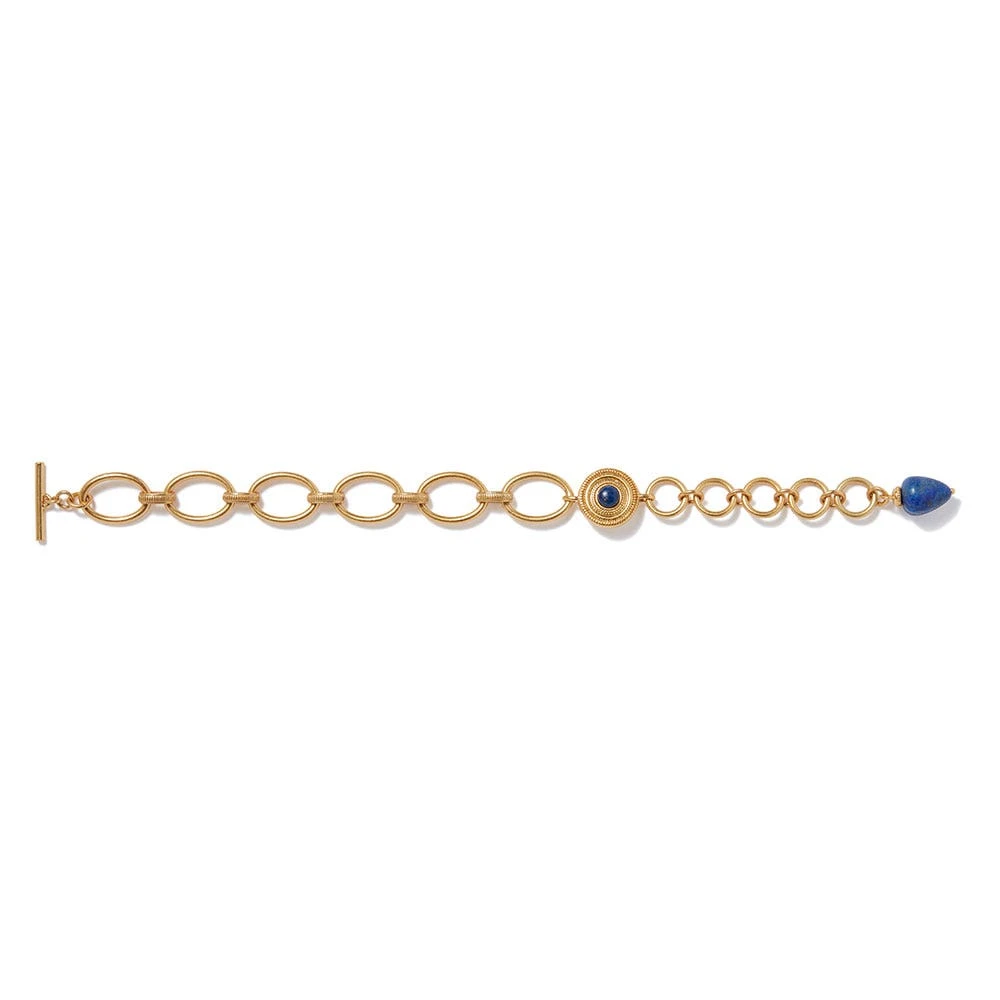 Embellished with lapis, our timeless bracelet is modeled after a pair of stunning gold earrings (4th century B.C.) in The Met collection, which feature amphora-shaped pendants enclosed in a ring. In the region of Italy now known as Tuscany, Etruscan civilization flourished between the 7th and 4th centuries B.C. The wealthy, cosmopolitan, and luxury-loving Etruscans developed some of the finest gold, silver, and bronze jewelry of the ancient world.