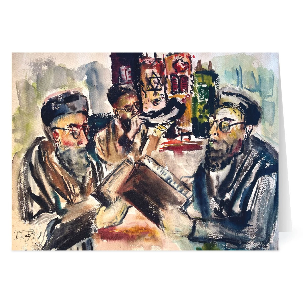 Let your loved ones know you’re thinking of them this Rosh Hashanah. This set of 8 includes 4 holiday cards featuring Rabbis Praying (1940s), and 4 cards reproducing Everyone Needs an Angel (Portrait of Sarah) (2017), both by Audrey Flack (American, b. 1931).