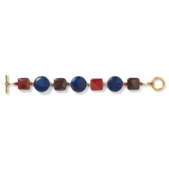This bold beaded bracelet celebrates a striking Frankish necklace crafted in Niederbreisig, Germany, between 500 and 600. Beads from Frankish necklaces boast a remarkable variety of patterns, colors, and forms. This statement-making adornment reimagines the original glass, stone, shell, and amber beads with jasper, tiger iron, and lapis.