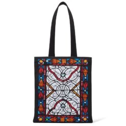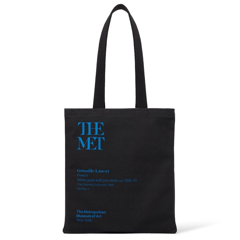 The radiant design on this tote is borrowed from a luminous stained-glass window at The Met Cloisters. Made in Troyes, France around 1265–70, the window features a dense pattern of strapwork, both in red and clear glass, contained by a bold 13th-century border not original to the panels.