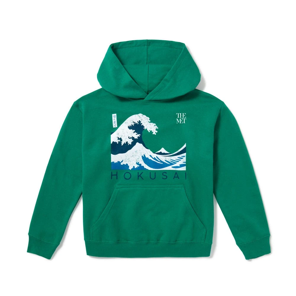 Make a splash in our hooded sweatshirt adapting Katsushika Hokusai’s (Japanese, 1760–1849) Under the Wave off Kanagawa, also known as The Great Wave (ca. 1830–32). This timeless woodblock print in The Met collection famously captures a towering breaker that makes even the imposing Mount Fuji appear comparatively small. The esteemed Edo-period artist was especially revered for his landscapes.