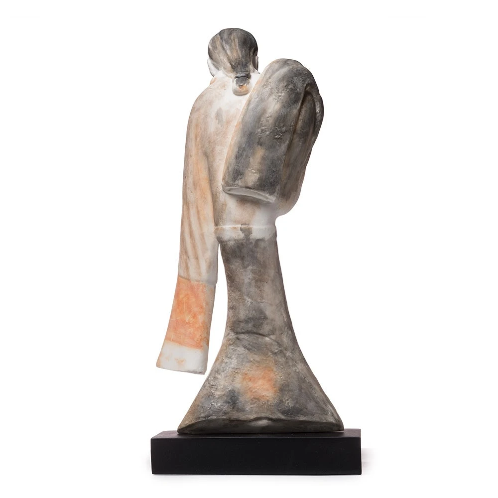 The Museum’s collection houses a ceramic figure of a female dancer from the Western Han period, which is made of earthenware accented with pigment. A quintessential example of early Chinese sculpture, this beautiful figure illustrates the artist’s achievement in conveying a sense of motion in a still object. The sculptor imbued the dancer with life force by capturing a tension-filled instant in her movement when she throws one sleeve back, gently stoops, and flexes her knees. Based on this evocative work, our expressive reproduction was created with a combination of three-dimensional imaging and traditional sculpture techniques.
