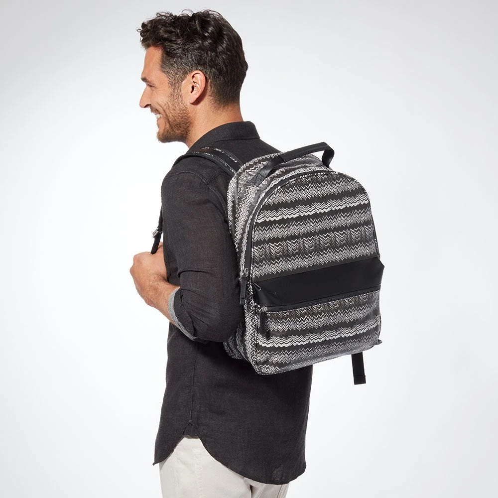 The sleek zigzag motif on our coated canvas backpack echoes the pattern on an early Hellenistic bottle (late 4th–early 3rd century B.C.) in The Met collection. This ancient Greek vessel known as an alabastron was used to store perfume.