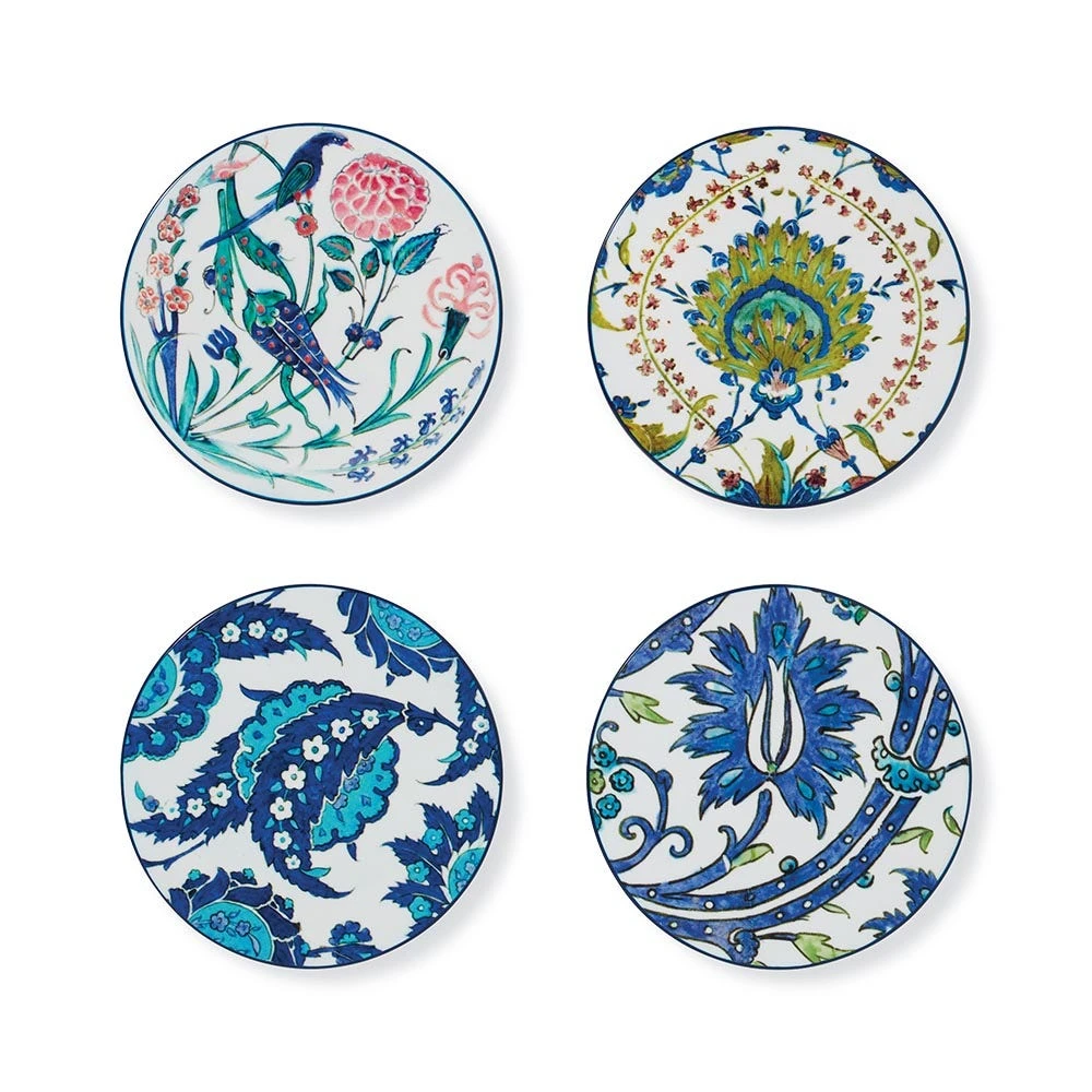 These eye-catching lacquer coasters reference a selection of ceramic treasures in the Museum’s Islamic art collection. Three of the four designs were crafted during the 16th century in Turkey’s renowned Iznik kilns—illustrious workshops that produced magnificent ceramic wares for the Ottoman court—while a 16th–17th-century tile panel with a wavy-vine motif was probably crafted at one of the ceramic tile workshops outside Iznik in the Ottoman province of Syria.