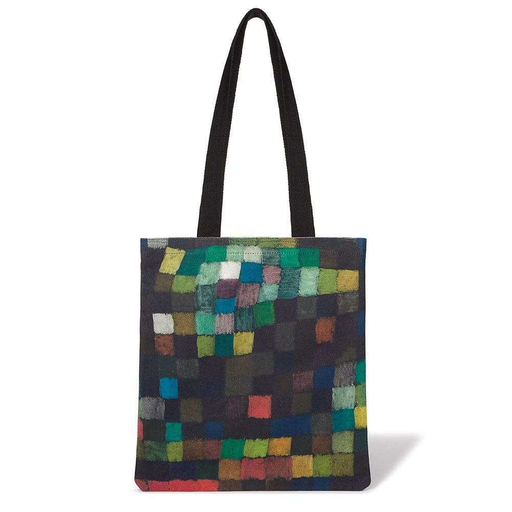 With a singular style characterized by abstracted forms and symbols, Paul Klee (German, b. Switzerland, 1879–1940) is renowned for his pioneering modernist visions. May Picture (1925), which features on our canvas tote, is from his Magic Square series, the result of a perspective-altering visit to Tunisia in 1914. Klee embraced the full power of abstraction by illustrating the landscape in squares. The painting exhibits his interest in color theory, which informed his teaching at the Bauhaus.
