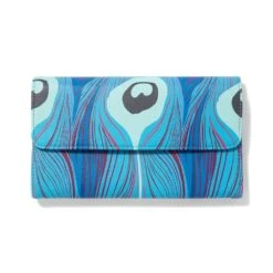 Featuring four concealed zip pockets, this elegant folding clutch exhibits the peacock feather motif from a Favrile glass vase (ca. 1900) by Louis Comfort Tiffany (American, 1848–1933) in The Met collection. The Gilded Age visionary mined the natural world for inspiration, borrowing brilliant organic details for his pioneering designs.