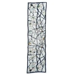 Louis Comfort Tiffany (American, 1848–1933) was one of America’s most noted decorative artists at the turn of the twentieth century. He designed the brilliant five- paneled Magnolia window (ca. 1885) for the Tiffany mansion at 72nd Street and Madison Avenue in New York where it was placed in the grand library. Divided by heavy leading, the window includes sections composed of graceful blossoming branches with pearly leaves and yellow and silver-gray leaf buds primed to open. Our elegant scarf features a detail adapted from this stunning window.