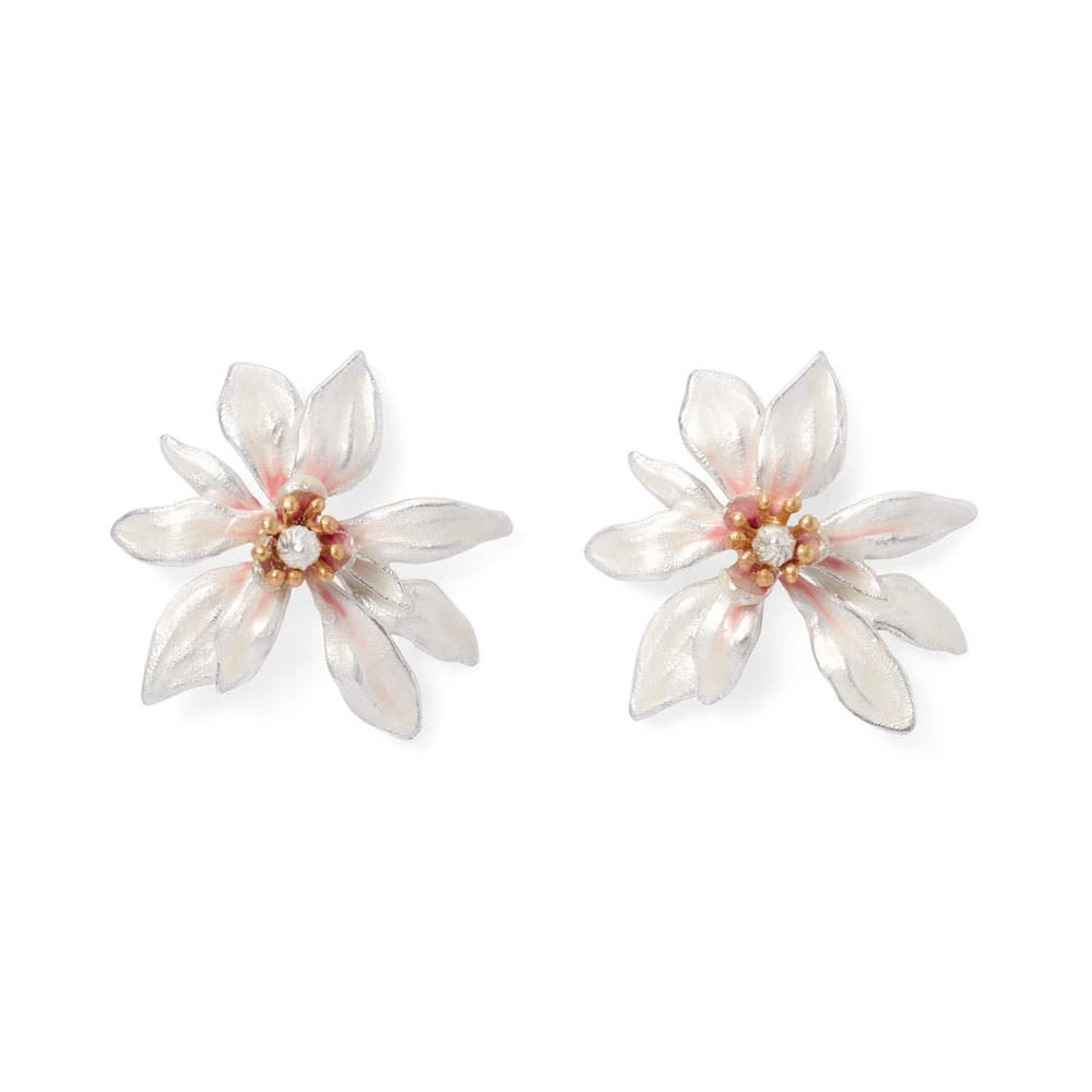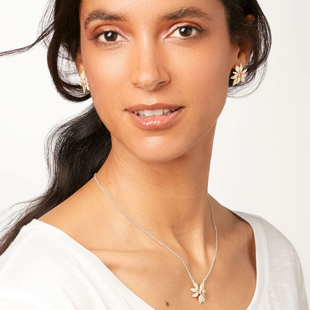 These luminous stud earrings recall the famous Magnolia Vase in The Met collection, the centerpiece of Tiffany & Co.’s display at the 1893 World’s Columbian Exposition in Chicago. The gleaming design is crafted in silver plate and accented with enamel, for a floral touch, day or evening. The earrings coordinate with our Magnolia Pin and Magnolia Pendant Necklace.