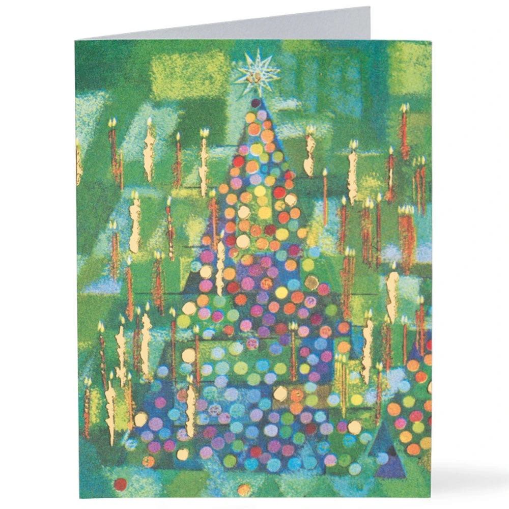 Here’s a unique and graphic card with timeless, midcentury modern flair. The cheery abstract Christmas tree brims with rainbow-colored ornaments and is surrounded by glowing candles and shimmering geometric planes. The sleek composition, titled Design for Christmas, was created in 1962 by Vincent Malta (American, 1922–2015). The artist taught at the Art Student’s League in New York City for more than 30 years.