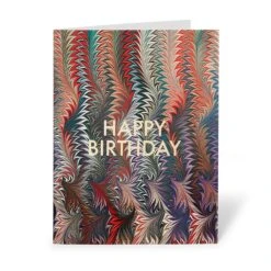 The centuries-old practice of marbling paper yields astounding patterns. Some designs are spontaneous, others are controlled; and while techniques vary between cultures, marbling typically refers to a method of transferring color from the surface of a water bath onto a piece of paper. This tradition is carried forth by the contemporary artists represented in The Paper Legacy Project, an initiative spearheaded by the Museum’s Thomas J. Watson Library to preserve and promote the “Golden Age” of American decorated paper. These eye-catching greeting cards feature a selection of modern-day marbled motifs so that you can wish your loved ones a “Happy Birthday” in style.