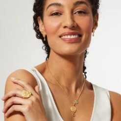 These stylish earrings pay tribute to the expansive collection of coins in the Museum’s Greek and Roman art galleries. Silver and gold currency held intrinsic value during Greece’s Hellenistic period, and spectacular, sculptural coins bearing the likenesses of emperors, animals, and other pictorial scenes became fashionable in jewelry as far back as the 3rd century.