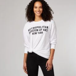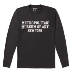 This classic unisex tee boasts the name of The Metropolitan Museum of Art in a distinctive “college-style” typeface on the front. The long-sleeve shirt is made of super-soft, 100% cotton jersey that has been enzyme-washed for extra comfort.