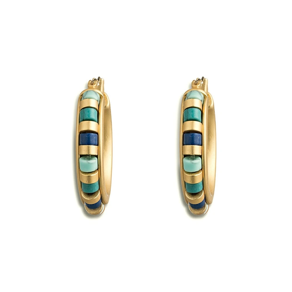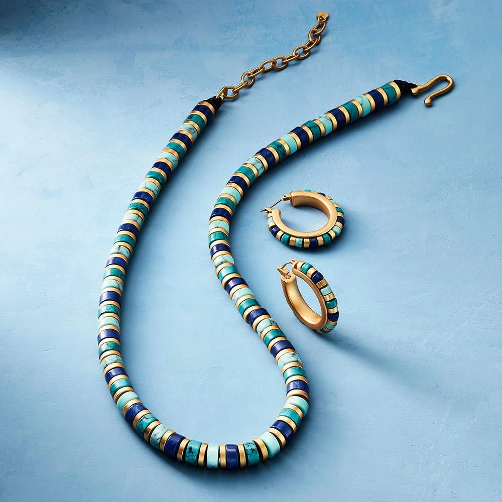 - 18K gold plate, with reconstituted turquoise and reconstituted lapis