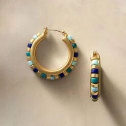 A section of an ancient Egyptian necklace in the Museum’s collection (Middle Kingdom, Dynasty 12, ca. 1878–1840 B.C.) features colorful cylindrical beads made of gold, lapis lazuli, and turquoise. This provides the basis for our striking earrings.