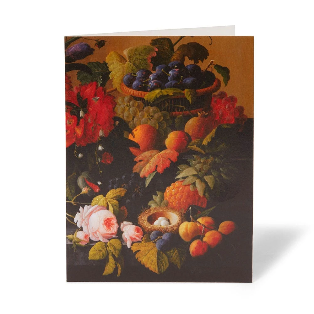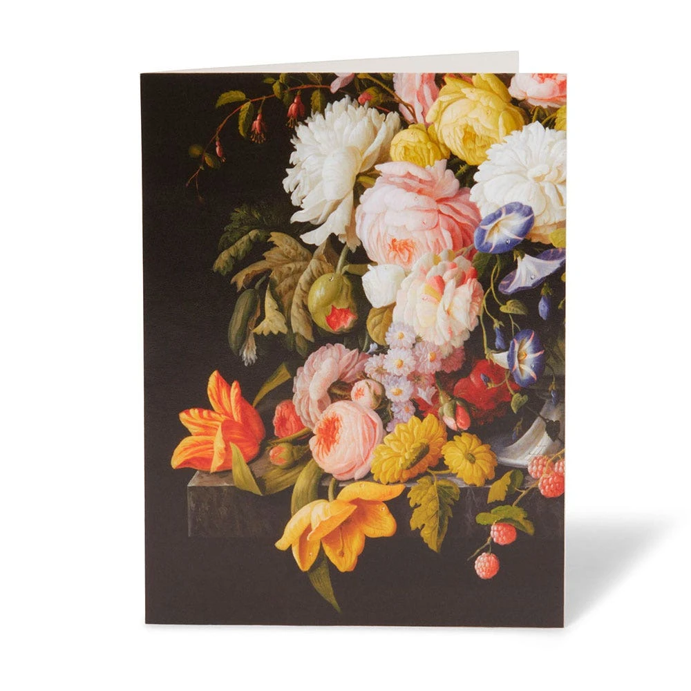 Our Midnight Garden notecards nod to the often overlooked genre of still-life painting. We’ve gathered details from five masterpieces in The Met collection, including three recent and important acquisitions of paintings by female artists. A Bouquet of Flowers (ca. 1612) by Clara Peeters (Flemish, ca. 1587–after 1636) as well as Flowers in a Grotesque Vase (ca. 1635) and Fruit and Flowers (ca. 1639), both by Orsola Maddalena Caccia (Italian, 1596–1676), join works by Margareta Haverman (Dutch, 1693–1722 or later) and Severin Roesen (American, b. Prussia, 1816–72?) to call attention to this virtuosic tradition.