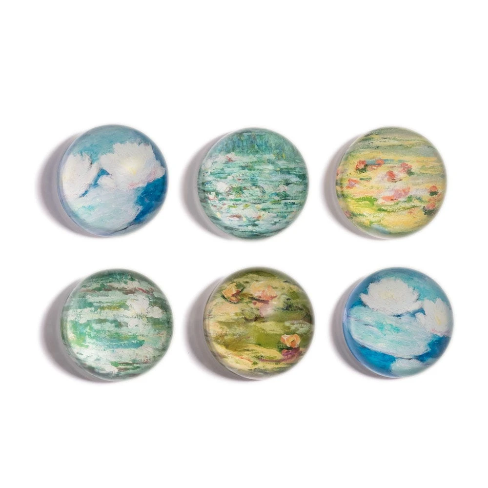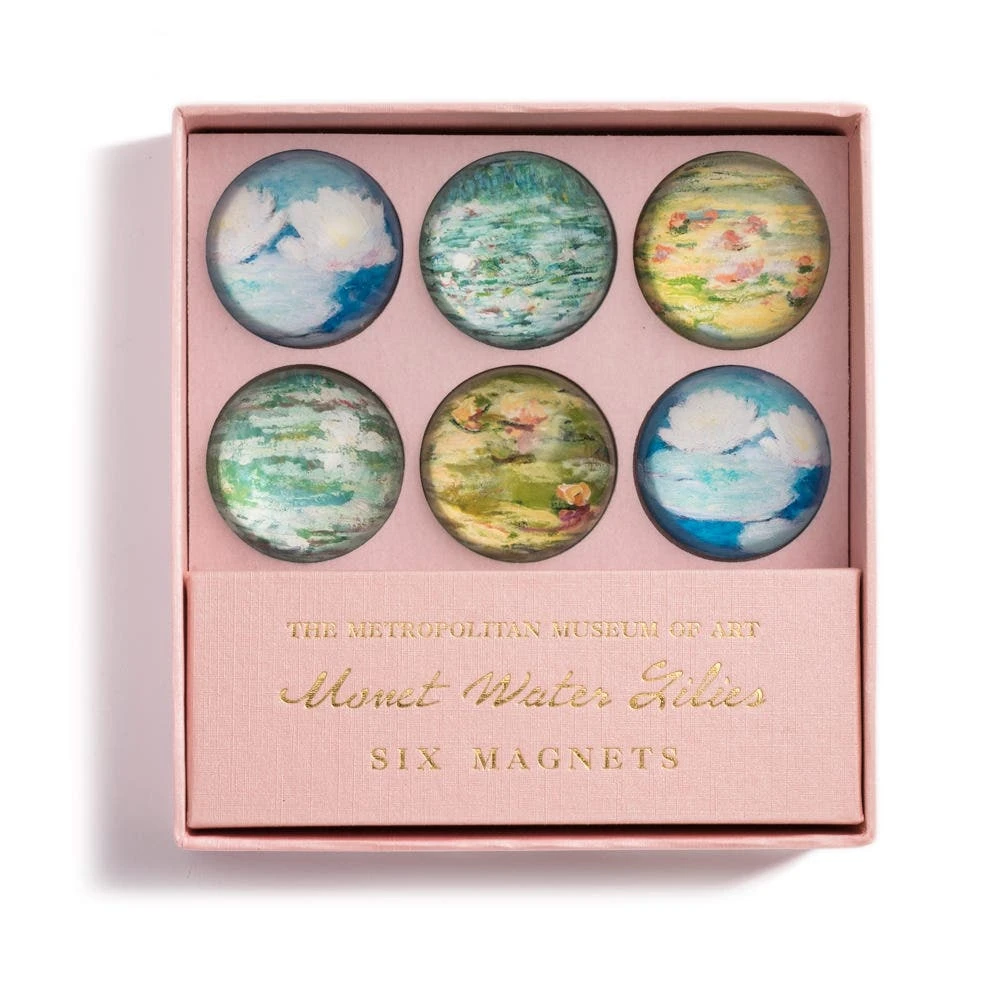 Claude Monet (French, 1840–1926) was a key figure in the Impressionist movement that transformed French painting in the second half of the 19th century. A passionate horticulturist, in 1893 he purchased land with a pond near his property in Giverny, intending to build something “for the pleasure of the eye and also for motifs to paint.” The result was his water-lily garden. Three of Monet’s beloved water-lily paintings in The Met collection provided the details for our unique magnets.