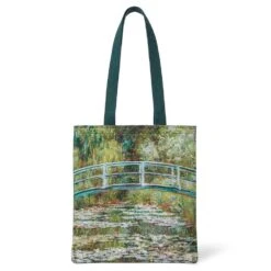 Our canvas tote features a beloved Met masterpiece by Claude Monet (French, 1840–1926). In 1893, the painter and passionate horticulturist purchased a plot of land with a pond near his home in Giverny. With the intention of transforming the acquisition into something “for the pleasure of the eye and also for motifs to paint,” he built his famous water-lily garden, which he subsequently immortalized across a series of 18 views—12 of which he completed in the summer of 1899—including Bridge over a Pond of Water Lilies (1899).