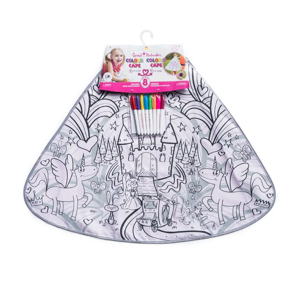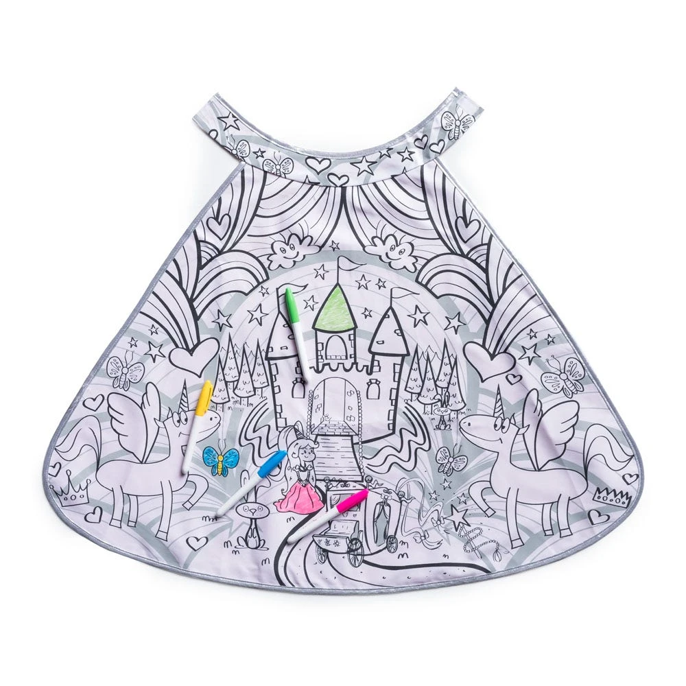 Princesses of the realm can customize their costumes while exercising their artistry. One side of the cape can be colored as they wish, while the other is shiny solid satin.