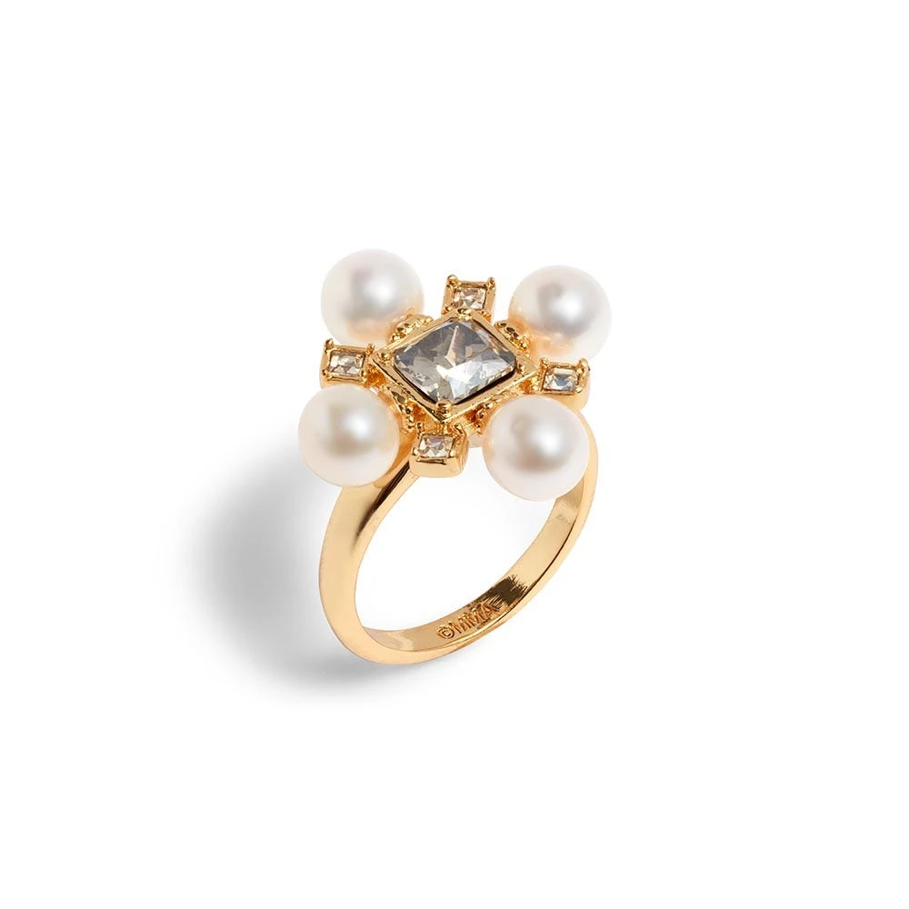 This eye-catching cocktail ring pays tribute to the splendid adornments worn by Ellen Maurice in Marcus Gheeraerts the Younger’s portrait (1597) at The Met. The Welsh heiress is poised in a dramatic dress embellished with lustrous pearls, which were known as the “Queen of gems” in the Elizabethan era. Gheeraerts was the preeminent painter in the late Elizabethan and early Jacobean courts, esteemed for the way he so masterfully rendered sumptuous fabrics and sparkling jewels.