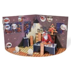 Get ready for Christmas 2021 with this interactive Advent calendar featuring whimsical pop-ups and illustrations of Santa in his workshop. With toys to make, presents to wrap, and lists to check (twice), Santa has lots to prepare before making those Christmas Eve deliveries. Each December day leading up to Christmas corresponds with a different window that opens to reveal Santa tailoring garments, answering the phones, taking a well-deserved nap, and more.
