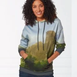 Be a force of nature in this cozy hoodie showcasing a detail from Asher Brown Durand’s (American, 1796–1886) awesome Landscape—Scene from “Thanatopsis” (1850). “Thanatopsis,” the Greek word for “meditation on death,” is also the name of a poem by William Cullen Bryant, who perceived death as humankind’s return to nature. Durand’s picture therefore reads like an elegy, guiding the eye beyond the earthly terrain and off into the hazy horizon.