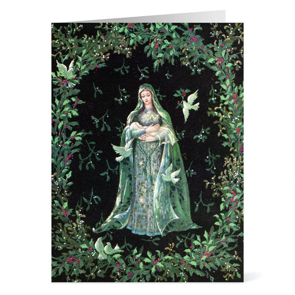 A loving illustration (1963) by Carl Tait (American, 1917–2011) and Lloyd Henson (American) depicts the Madonna and Child enveloped by a Christmas wreath. Send merry Christmas wishes to your loved ones with our cards reproducing this adoring image.