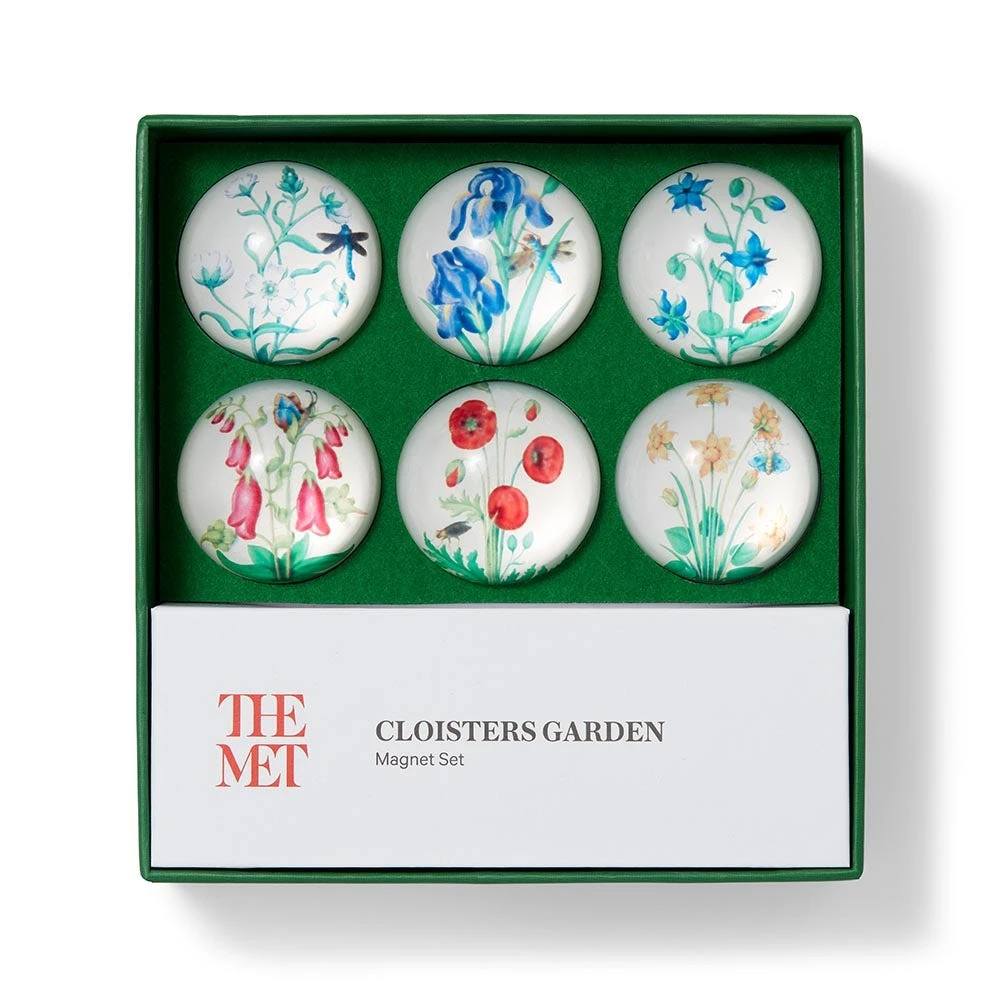 Our charming magnets recall an early 16th-century book of flower studies made in Tours, France. The pages of this rare illuminated manuscript were painted by the Master of Claude de France who, inspired by “garden variety” flowers, elevated the likes of the dandelion and the fava bean to the celebrated status of the rose. Instead of exclusively depicting flowers for their symbolic or medicinal significance, the artist observed their physical beauty in these exquisitely detailed watercolors articulated with gold and silver paint, iron- and carbon-based ink, and organic glazes. Each of the flowers in this manuscript can be found in the gardens of The Met Cloisters.