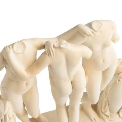 Created in the second century A.D., the Museum’s marble The Three Graces is a Roman copy of a Greek statue group from the second century B.C. These three young girls, linked in a dance-like pose, represent Aglaia (Beauty), Euphrosyne (Mirth), and Thalia (Abundance). Young, beautiful, and modest, they personify the graceful sensuousness of the female form; their closest connection is with Aphrodite, the goddess of love and beauty, whom they serve as handmaidens. This frieze-like composition in the Museum’s collection is typical of classicizing art of the second and first century B.C. Our reduced-scale reproduction was created using a combination of three- dimensional imaging and traditional sculpture techniques.
