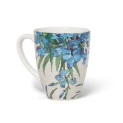 Reaching blooms from a radiant spring bouquet by Vincent van Gogh (Dutch, 1853–1890) are adapted for our tea-infusing covered mug. In May of 1890, just before his departure from the asylum in Saint-Rémy, the artist painted four exceptional still lifes, including the exuberant Irises (1890) in The Met collection. Van Gogh sought to achieve a “harmonious and soft” effect by placing the “violet” flowers against a “pink background.” Owing to his use of fugitive red pigments, these colors have since faded with time.