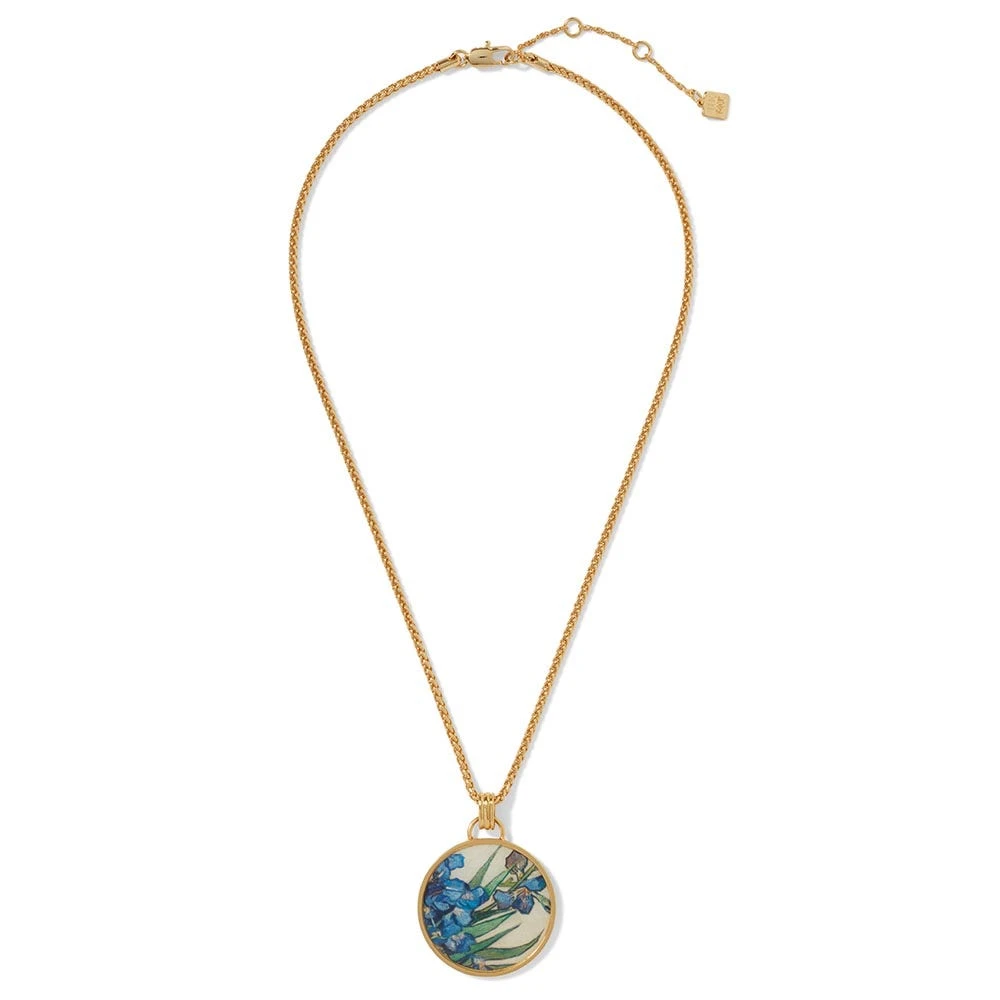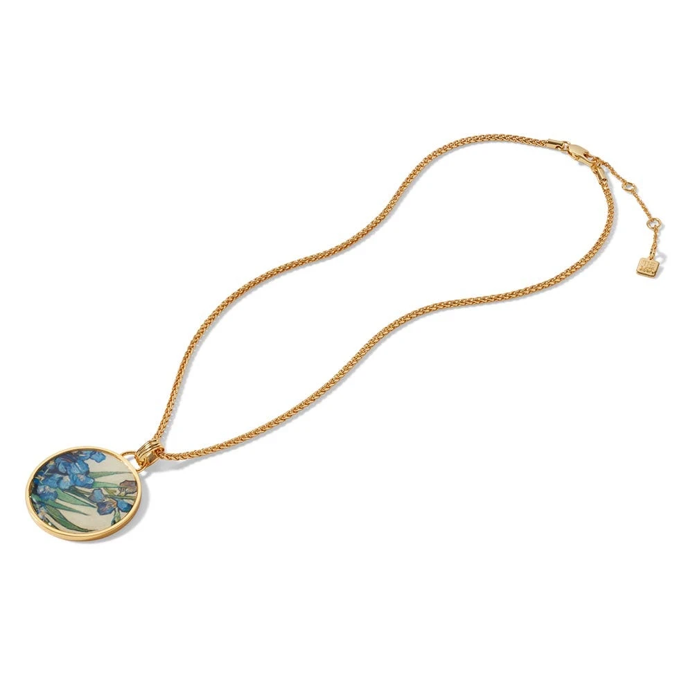 Reaching blooms from a radiant spring bouquet by Vincent van Gogh (Dutch, 1853–1890) decorate our enamel pendant. In May of 1890, just before his departure from the asylum in Saint-Rémy, the artist painted four exceptional still lifes, including the exuberant Irises (1890) in The Met collection. Van Gogh sought to achieve a “harmonious and soft” effect by placing the “violet” flowers against a “pink background.” Owing to his use of fugitive red pigments, these colors have since faded with time.