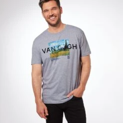 Vincent van Gogh (Dutch, 1853–1890) became particularly captivated by cypress trees during his convalescence at the asylum in Saint-Rémy. Wheat Field with Cypresses (1889), housed at The Met and reproduced on this comfy crew neck tee, is among his exuberant compositions featuring the towering evergreens. The ordinarily self-critical artist regarded this painting as one of his “best” summer landscapes.