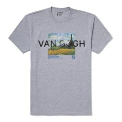 Vincent van Gogh (Dutch, 1853–1890) became particularly captivated by cypress trees during his convalescence at the asylum in Saint-Rémy. Wheat Field with Cypresses (1889), housed at The Met and reproduced on this comfy crew neck tee, is among his exuberant compositions featuring the towering evergreens. The ordinarily self-critical artist regarded this painting as one of his “best” summer landscapes.