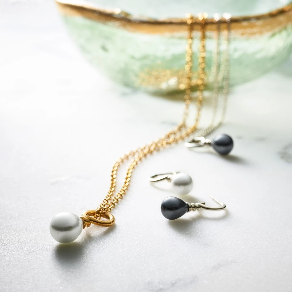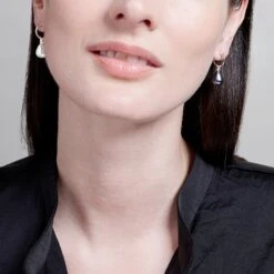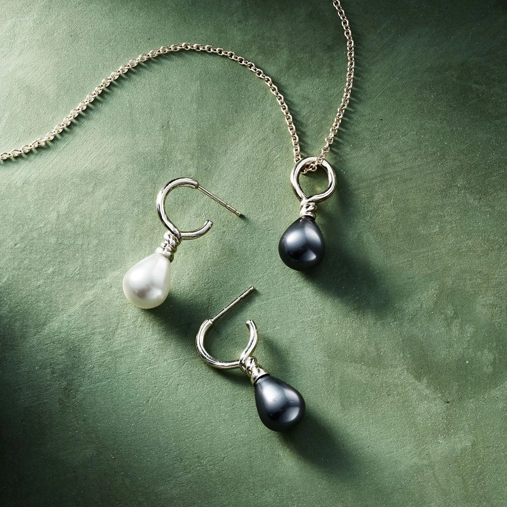 With alluringly mismatched black and white glass pearls and shimmering sterling silver, our elegant Venus Pearl Drop Earrings are worthy of a goddess. Classic yet practical, they dress up an everyday work outfit, and stand out on special occasions. The lustrous black glass pearl varies in luminosity and will appear different depending on the light. With carefully made posts and delicate details, these are pieces that will be staples of your wardrobe for years.