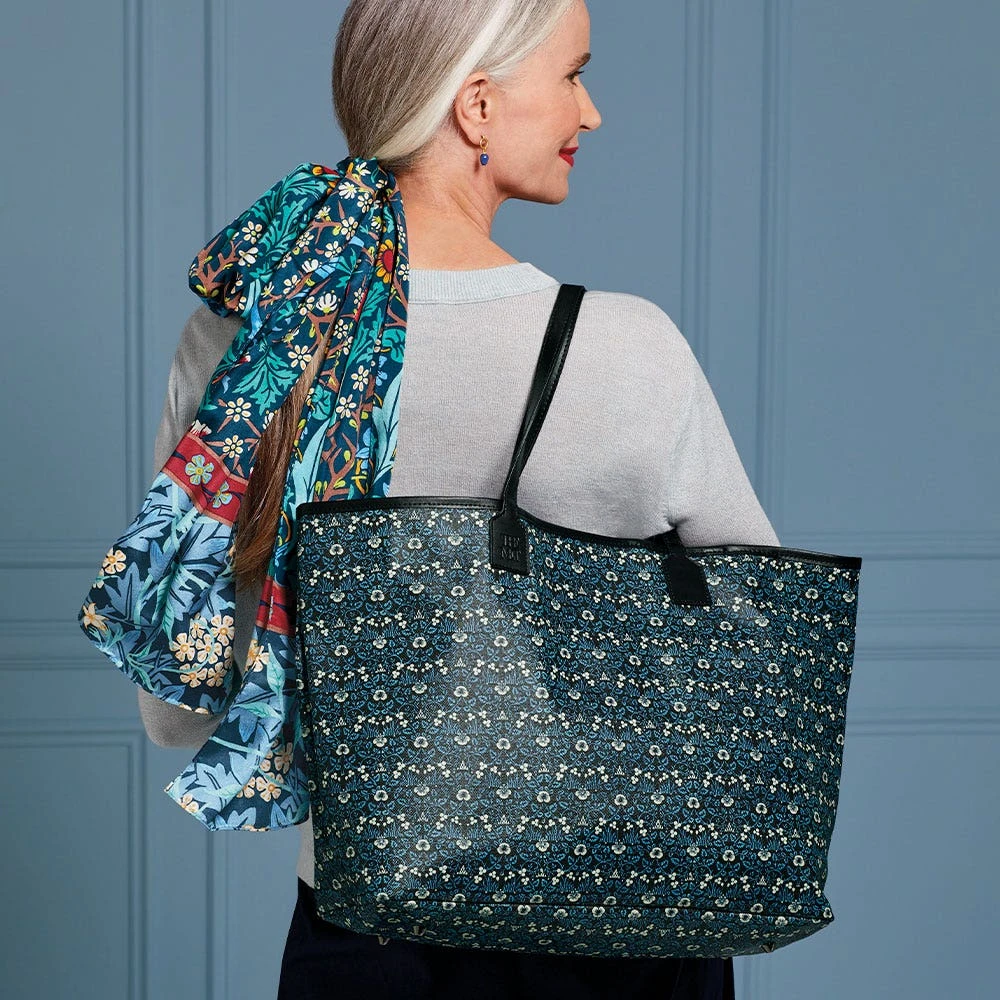 Perfect for city commuting and country getaways alike, our coated canvas tote features William Morris’s (British, 1834–1896) Eyebright, an elegant cotton textile design registered in 1883 and printed around 1917–23 at Merton Abbey Tapestry Works (British, founded 1881). As the leading figure of the Arts and Crafts movement in Britain, Morris believed that beauty, imagination, and order were the necessary components of a strong design, and he frequently derived inspiration from the English countryside.