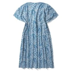 William Morris (British, 1834–1896) is celebrated the world over for his lush floral and foliate motifs. As the leading figure of the Arts and Crafts movement in Britain, he oversaw the creation of decorative designs in abundance, including over 50 wallpapers. Our 100% cotton kaftan reimagines his sunny yellow Larkspur (ca. 1872) in blue. This block-printed wallpaper was designed by Morris for his firm Morris & Company and printed by London’s Jeffrey & Co. before it was acquired by The Met in 1923.Â